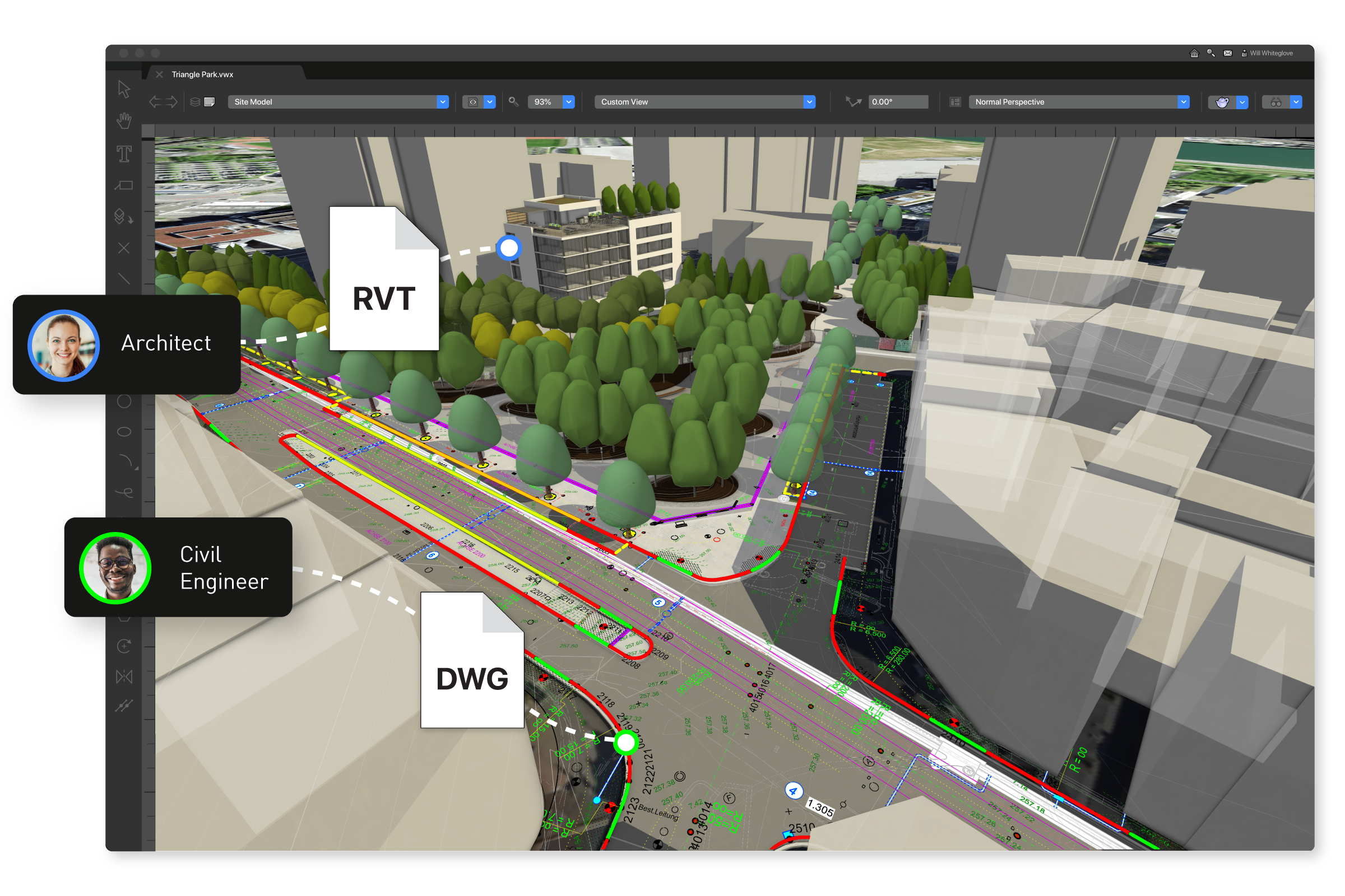 Easily collaborate and share files with colleagues, consultants, and clients with an expansive selection of import/export capabilities, including AutoCAD®, Revit®, SketchUp® and Rhino® file formats, and more. Additionally, you can easily perform an OPEN BIM workflow for BIM projects requiring the direct referencing of IFC, DWG, RVT, and BCF file formats.